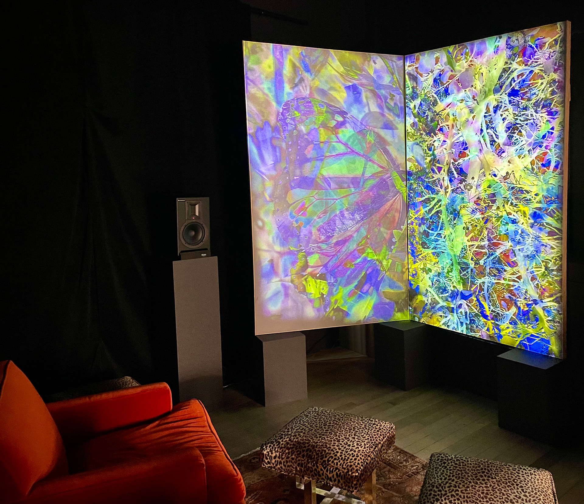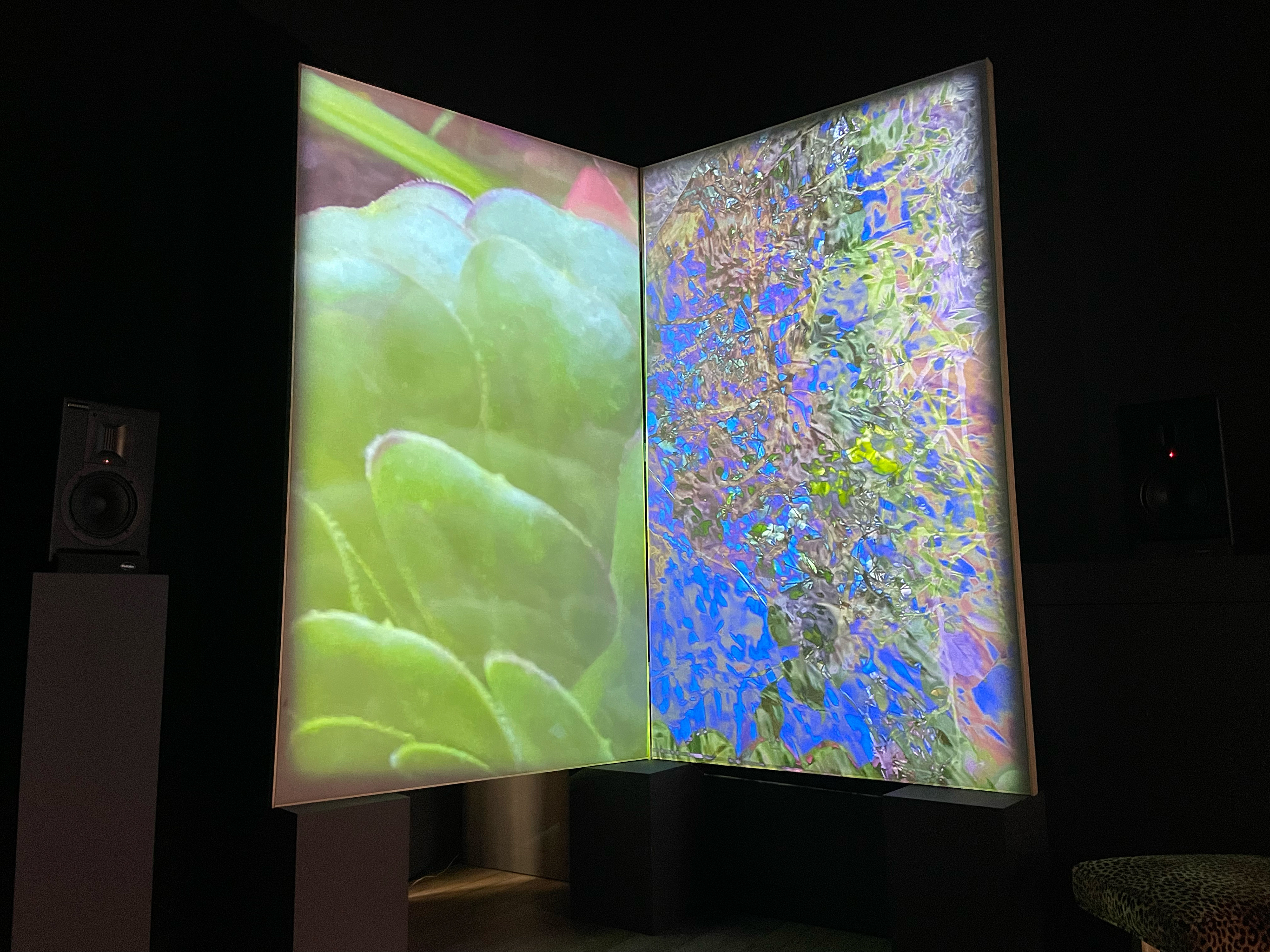 The performance is an live mix of an audio/visual score derived from an active camera feed and previous recordings made at the start of the pandemic lockdown around the periphery of my studio using a handful of media capturing devices from motion activated surveillance cameras to a camera that uses a microscopic lens. The work unfolds the possibilities of intersecting with the sublime in one’s very own backyard by engaging, revealing, and commingling the flora with the insects and creatures with whom we share the land. A reimagined performance of the glass harp as played with hearing aid feedback cupped within a variety of glasses heightens the works connections to sound and its integral part of the perceived environment. Cushioned within the environment of the garden, the images, gestures, and feedback harkens towards attempts to commune with both human and non-human entities found in the landscape. While the work is scored through hundreds of clips mostly tethered with audio from their original recordings, the exact combination and mix of the audio/visual materials are improvised through a network of software played live from a laptop. Towards the end of the performance a camera feed focuses on a live version of the glass harp described above that is layered into the imagery. No two performances are exactly alike.